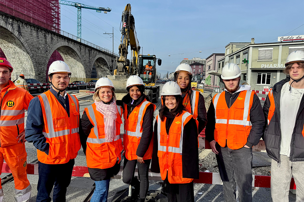 Notre groupe, composé de deux job coachs et de cinq participant-e-s, a donc enfilé gilet de sécurité et casque de chantier pour partir à la découverte du Tram Lot 6 (Station Prilly-Malley, Galicien). À notre arrivée sur le chantier à 9h, ouvriers et machinistes s’activaient pour achever les ultimes étapes. En effet, cette ligne est destinée à relier Lausanne à Renens dès 2026.