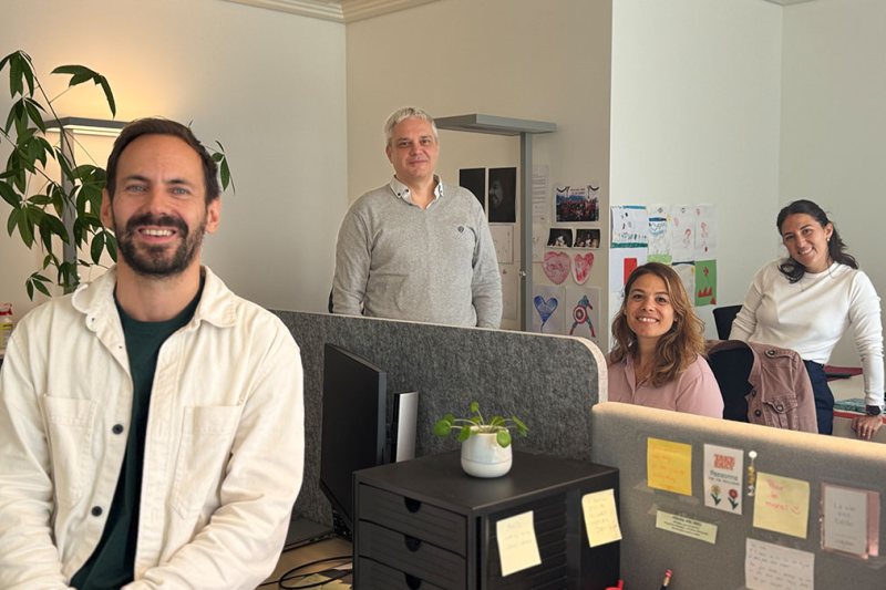 Au premier plan, Monsieur Stéphane Maspero, puis, de gauche à droite, Monsieur Daniel Gonzalez, Madame Sonia Donato et Madame Julie Dizerens, collaborateur-trice-s du pôle Placement.